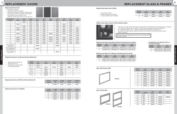 • Actual size of door is 1 / 8 " smaller in both width and height than the dimension code ( Example : D2430 actual size is 23 7 / 8 " x 29 7 / 8 ")