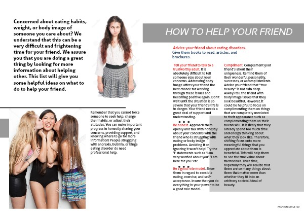 Concerned about eating habits, weight, or body image of someone you care about? We understand that this can be a very difficult and frightening time for your friend. We assure you that you are doing a great thing by looking for more information about helping other. This list will give you some helpful ideas on what to do to help your friend.