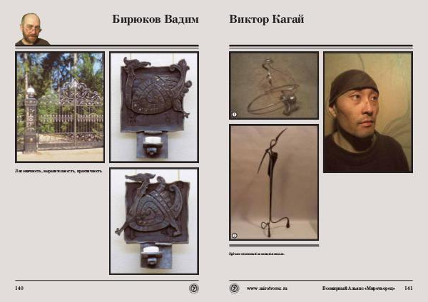 Бирюков Вадим Виктор Кагай Лаконичность, выразительность, практичность. Художественный кованый металл. 140 www.mirotvorez.ru Всемирный Альянс «Миротворец» 141