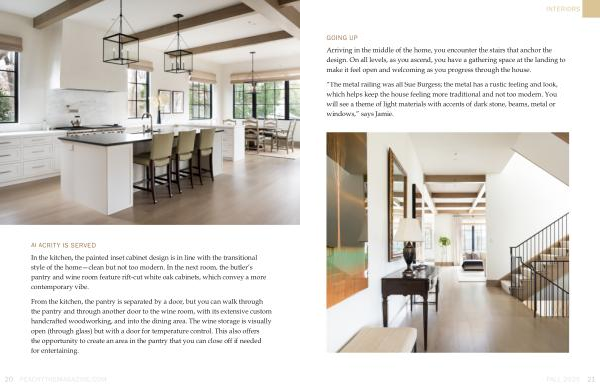 “ The metal railing was all Sue Burgess; the metal has a rustic feeling and look, which helps keep the house feeling more traditional and not too modern. You will see a theme of light materials with accents of dark stone, beams, metal or windows,” says Jamie.