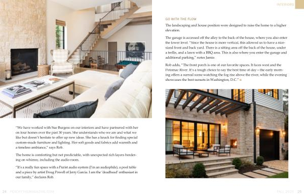 “ We have worked with Sue Burgess on our interiors and have partnered with her on four homes over the past 30 years. She understands who we are and what we like but doesn’ t hesitate to offer up new ideas. She has a knack for finding special custom-made furniture and lighting. Her soft goods and fabrics add warmth and a timeless ambiance,” says Rob.
