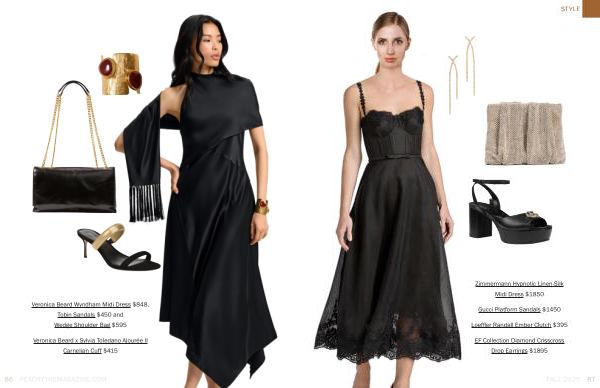 Veronica Beard Wyndham Midi Dress $ 848, Tobin Sandals $ 450 and Wedge Shoulder Bag $ 595