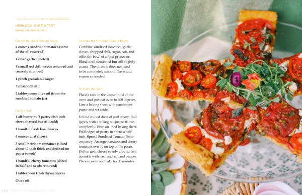 Unfold chilled sheet of puff pastry . Roll lightly with a rolling pin just to flatten completely . Place on lined baking sheet . Fold edges of pastry in about a half inch . Spread Sundried Tomato Pesto on pastry . Arrange tomatoes and cherry tomatoes evenly on top of the pesto . Dollop goat cheese evenly around tart . Sprinkle with basil and salt and pepper . Place in oven and bake for 30 minutes .
