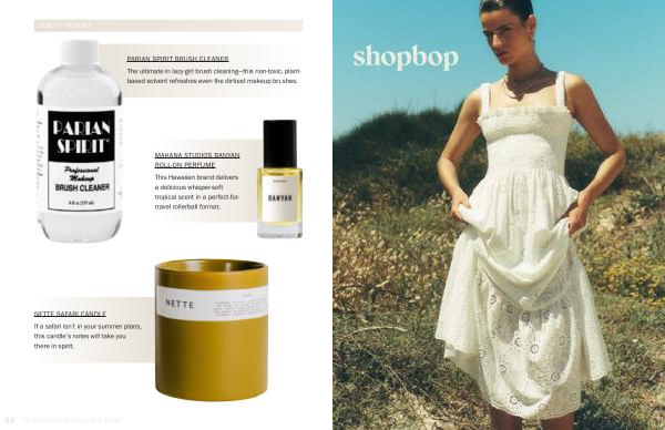 PARIAN SPIRIT BRUSH CLEANER The ultimate in lazy-girl brush cleaning— this non-toxic, plantbased solvent refreshes even the dirtiest makeup brushes.