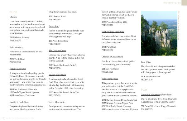 INSIDERS’ GUIDE perfect gift for a friend or family member with a refined sweet tooth, or a special treat for yourself.