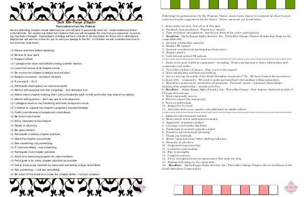 Sorors attending chapter retreat selected one commitment to personally work on. Listed below are those