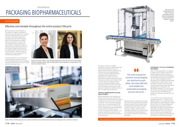 With the right partners , this challenge can be turned into an economic benefit : Faller Packaging and Schubert-Pharma can support manufacturers from the Clinical Trial Phase 3 onwards – with a customised packaging solution which is already designed for the entire product lifecycle . This eliminates the need to change the format of the packaging at a later date . Karin Kleinbach , Sales Director at Schubert-Pharma , explains : “ Our customers benefit from seamless service for every level of automation , from launch to series production .”