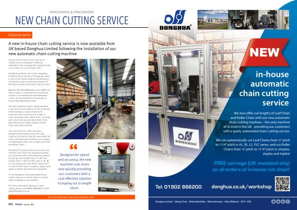 We now offer cut lengths of Leaf Chain and Roller Chain with our new automatic chain cutting machine – the only machine of its kind in the UK - providing our customers with a quick , automated chain cutting service .
