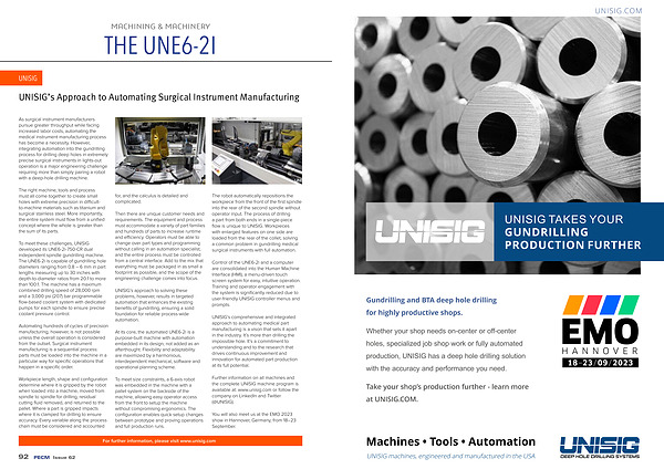 UNISIG ’ s comprehensive and integrated approach to automating medical part manufacturing is a vison that sets it apart in the industry . It ’ s more than drilling the impossible hole . It ’ s a commitment to understanding and to the research that drives continuous improvement and innovation for automated part production at its full potential .