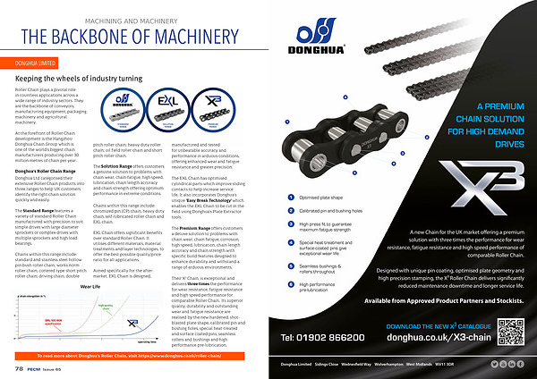 Donghua Ltd categorised their extensive Roller Chain products into three ranges to help UK customers identify the right chain solution quickly and easily .