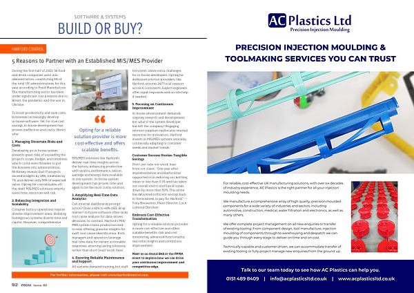 For reliable , cost-effective UK manufacturing solutions , with over six decades of industry experience , AC Plastics is the right partner for all your injection moulding needs .