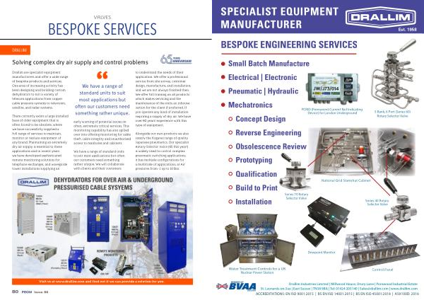 Drallim are specialist equipment manufacturers and offer a wide range of bespoke products and services . One area of increasing activity has been designing and building custom dehydrators to suit a variety of telecom applications from copper cable pressure systems to television , satellite , and radar systems .