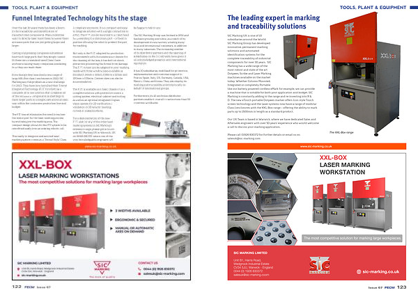 Even though they launched a new range of large XXL-Box class 1 enclosures in 2022 , SIC Marking saw this problem as a new challenge for 2023 . They have now launched their Funnel Integrated Technology ( F . I . T . for short ) as a complete all in one solution that combines all of the necessary components and settings to mark larger parts in a simple , safe and economic way within the customers production line and budget .
