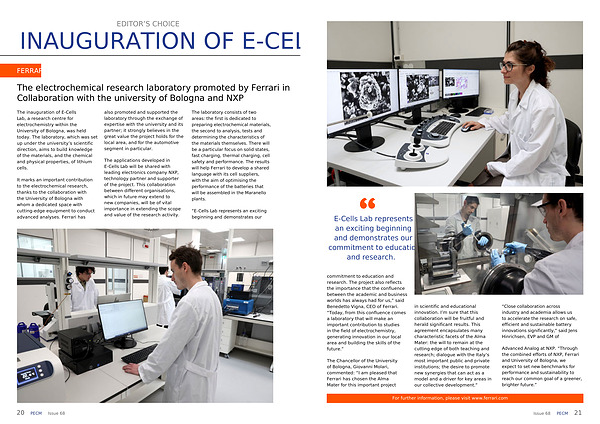The electrochemical research laboratory promoted by Ferrari in Collaboration with the university of Bologna and NXP
