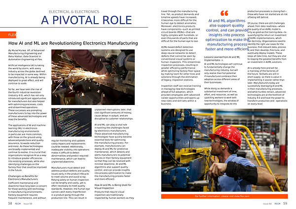 AI and ML can play a vital role in tackling the challenges faced by electronics manufacturers . These advanced manufacturing technologies have quickly become essential tools for optimizing the manufacturing process . For example , manufacturers can deploy AI and ML for predictive maintenance , which detects and alerts manufacturers to potential failures in their factory equipment so that they can be resolved with minimal downtime . AI and ML algorithms also support quality control , and can provide insights into process optimization to make the manufacturing process faster and more efficient .