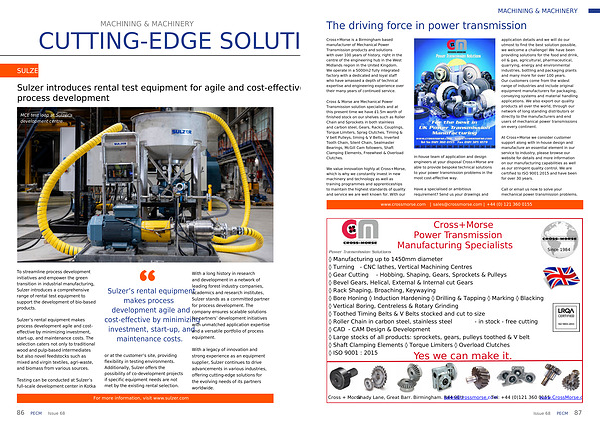With a long history in research and development in a network of leading forest industry companies , academics and research institutes , Sulzer stands as a committed partner for process development . The company ensures scalable solutions for partners ’ development initiatives with unmatched application expertise and a versatile portfolio of process equipment .