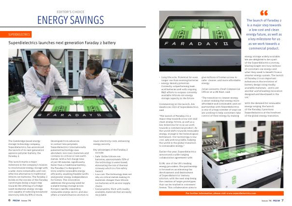 E. ON, one of the UK’ s leading energy providers. The partnership is focused on accelerating the development and deployment of Superdielectrics’ battery solution, with the next step being the creation of larger prototypes that can be trialled in customers’ homes. This collaboration aims to