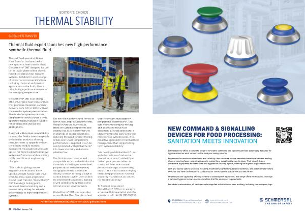 Thermal fluid specialist, Global Heat Transfer, has launched a new synthetic heat transfer fluid, Globaltherm ® DBT, designed for use in the liquid phase within closed, forced circulation heat transfer systems. Suitable for a wide range of industrial process applications, including chemical and plastics applications— the fluid offers a reliable, high-performance solution for managing temperature.