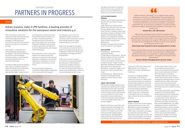 Ardian also intends to support the commercial and technological development of JPB Système’ s innovations, notably Keyprod, a hardware and software solution for real-time machine performance monitoring, and Boltrakk, a fastening monitoring system aimed at new