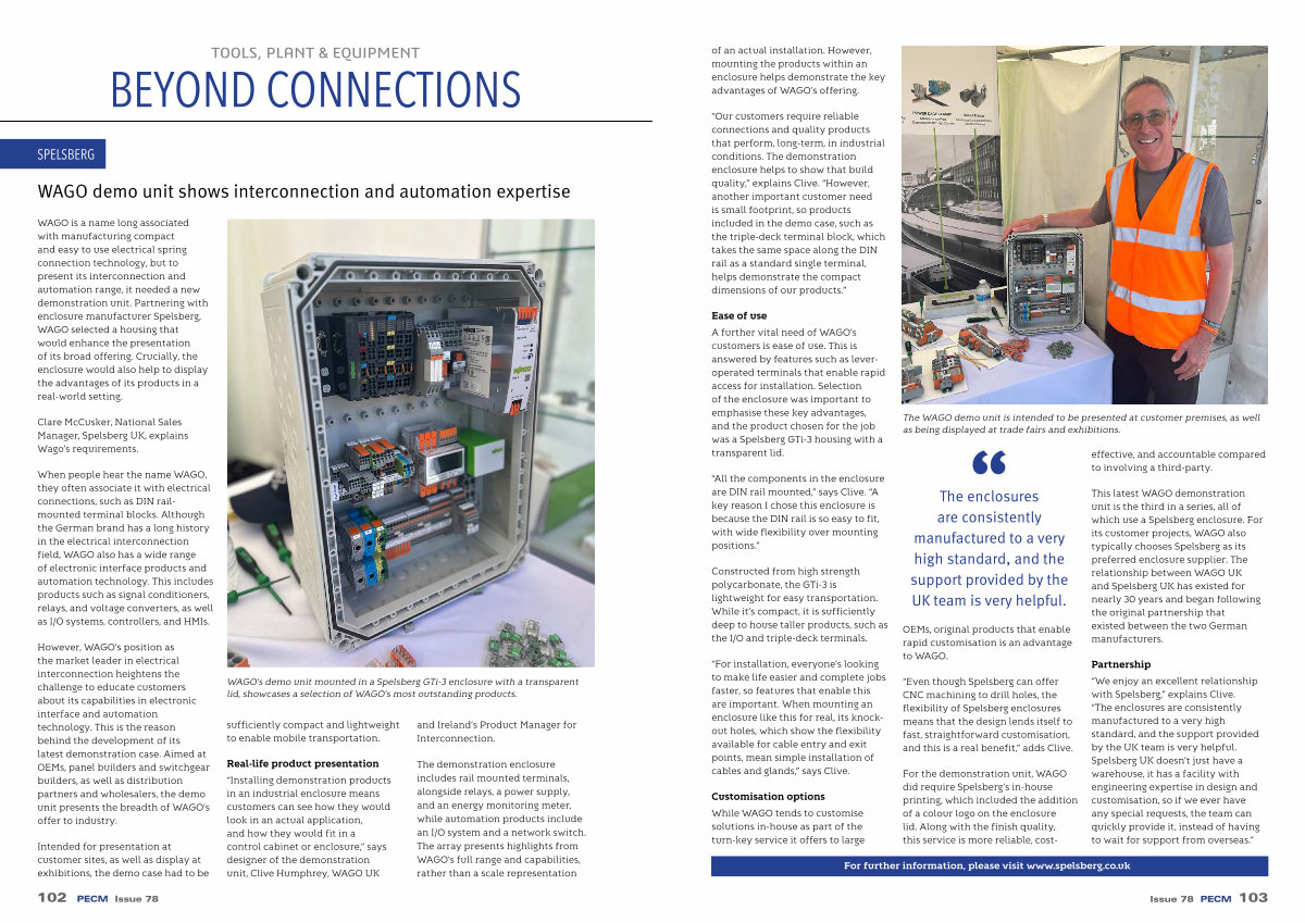 This latest WAGO demonstration unit is the third in a series, all of which use a Spelsberg enclosure. For its customer projects, WAGO also typically chooses Spelsberg as its preferred enclosure supplier. The relationship between WAGO UK and Spelsberg UK has existed for nearly 30 years and began following the original partnership that existed between the two German manufacturers.