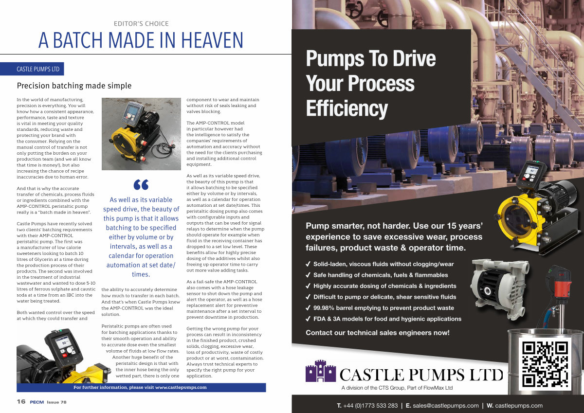 the ability to accurately determine how much to transfer in each batch. And that’ s when Castle Pumps knew the AMP-CONTROL was the ideal solution.