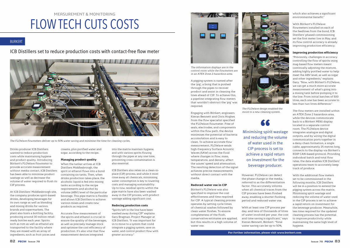 Drinks producer ICB Distillers wanted to reduce production costs while maintaining hygiene and product quality. Introducing Bürkert’ s FLOWave flowmeter to provide accurate measurement without media contact, ICB Distillers has been able to minimise product wastage as well as decrease the volume of water required to flush its CIP process.