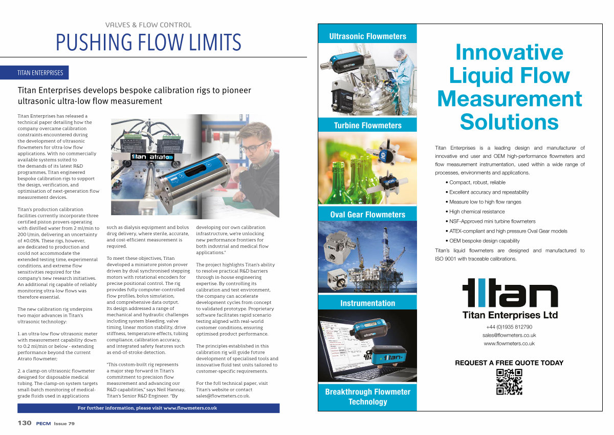 Titan Enterprises has released a technical paper detailing how the company overcame calibration constraints encountered during the development of ultrasonic flowmeters for ultra-low flow applications. With no commercially available systems suited to the demands of its latest R & D programmes, Titan engineered bespoke calibration rigs to support the design, verification, and optimisation of next-generation flow measurement devices.