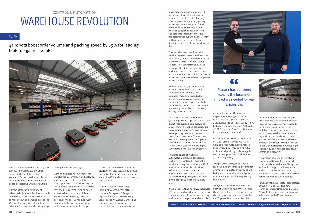 Richard Lawford, MD & Founder of Wayland Games, said:“ Phase 1 has delivered exactly the business impact we needed for our expansion. We’ re processing significantly more orders with the same team size, and our customers are seeing faster dispatch times during peak periods.