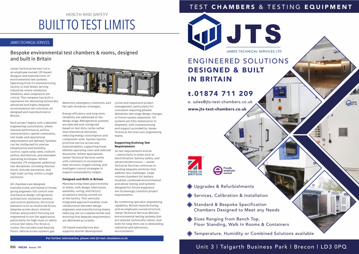 James Technical Servies Ltd is an employee-owned, UK-based, designer and manufacturer of environmental test systems. Operating from it’ s manufacturing facility in mid-Wales, serving industries where validation, reliability and compliance are critical. The company has built a reputation for delivering technically advanced and highly bespoke environmental test solutions, all designed and manufactured in Britain.