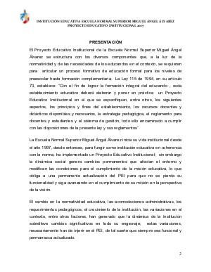 El Proyecto Educativo Institucional de la Escuela Normal Superior Miguel Ángel
