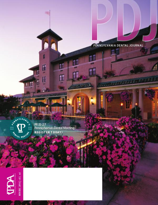 P E N N S Y LVA N I A D E N TA L J O U R N A L PP.15 -27 Pennsylvania’s Dental Meeting NOV/DEC 2016 | v83, n6 R E G I S T E R T O D AY !