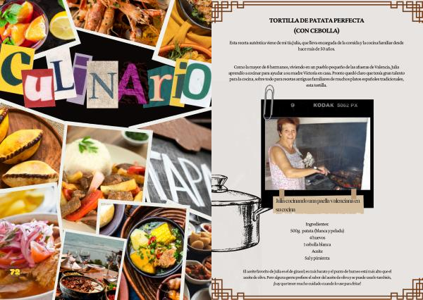 Como la mayor de 8 hermanos , viviendo en un pueblo pequeño de las afueras de Valencia , Julia aprendío a cocinar para ayudar a su madre Victoria en casa . Pronto quedó claro que tenía gran talento para la cocina , sobre todo para recetas antiguas familiares de muchos platos españoles tradicionales , esta tortilla .