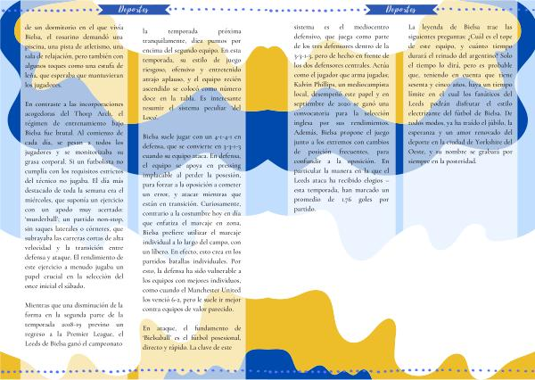 sistema es el mediocentro defensivo , que juega como parte de los tres defensores dentro de la 3-3-1-3 , pero de hecho en frente de los dos defensores centrales . Actúa como el jugador que arma jugadas ; Kalvin Phillips , un mediocampista local , desempeñó este papel y en septiembre de 2020 se ganó una convocatoria para la selección inglesa por sus rendimientos . Además , Bielsa propone el juego junto a los extremos con cambios de posición frecuentes , para confundir a la oposición . En particular la manera en la que el Leeds ataca ha recibido elogios – esta temporada , han marcado un promedio de 1.76 goles por partido .