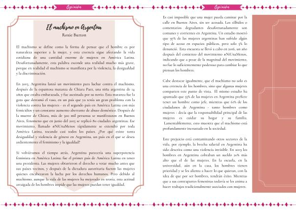 Este prejuicio está contaminando otros sectores de la vida , por ejemplo , la brecha salarial en Argentina ha sido descrita como una violencia invisible . En 2019 los hombres en Argentina cobraban un sueldo 20 % más alto que el de las mujeres . En la escuela , en la universidad , aún en la casa , los hombres tienen prioridad y se les alienta a hacer lo que quieran , con la idea de que por ser hombres , tendrán éxito . Mientras que a sus contrapartes femeninas todavía se les anima a hacer trabajos tradicionalmente asociados con mujeres .