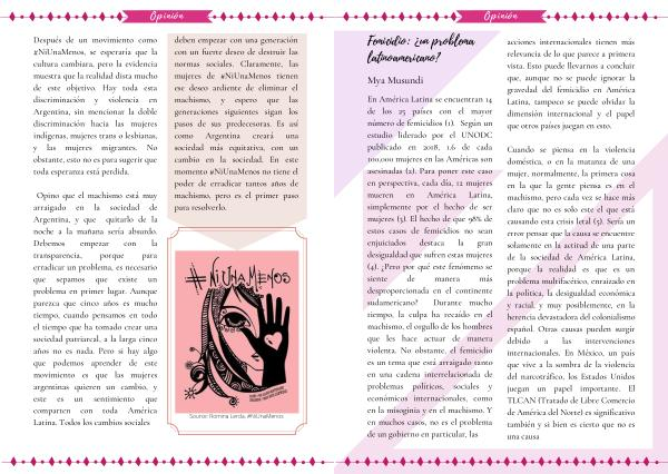 En América Latina se encuentran 14 de los 25 países con el mayor número de femicidios ( 1 ). Según un estudio liderado por el UNODC publicado en 2018 , 1.6 de cada 100,000 mujeres en las Américas son asesinadas ( 2 ). Para poner este caso en perspectiva , cada día , 12 mujeres mueren en América Latina , simplemente por el hecho de ser mujeres ( 3 ). El hecho de que 98 % de estos casos de femicidios no sean enjuiciados destaca la gran desigualdad que sufren estas mujeres ( 4 ). ¿ Pero por qué este fenómeno se siente de manera más desproporcionada en el continente sudamericano ? Durante mucho tiempo , la culpa ha recaído en el machismo , el orgullo de los hombres que les hace actuar de manera violenta . No obstante , el femicidio es un tema que está arraigado tanto en una cadena interrelacionada de problemas políticos , sociales y económicos internacionales , como en la misoginia y en el machismo . Y en muchos casos , no es el problema de un gobierno en particular , las acciones internacionales tienen más relevancia de lo que parece a primera vista . Esto puede llevarnos a concluir que , aunque no se puede ignorar la gravedad del femicidio en América Latina , tampoco se puede olvidar la dimensión internacional y el papel que otros países juegan en esto .