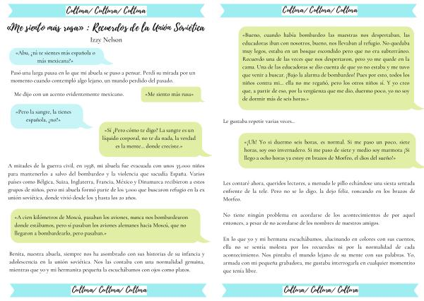 En lo que yo y mi hermana escuchábamos , alucinando en colores con sus cuentos , ella no se sentía molesta por los recuerdos ni por la normalidad de cada acontecimiento . Nos pintaba el mundo lejano de su mente con sus palabras . Yo , armada con mi pequeña grabadora , me gustaba interrogarla en cualquier momentito que tenía libre .