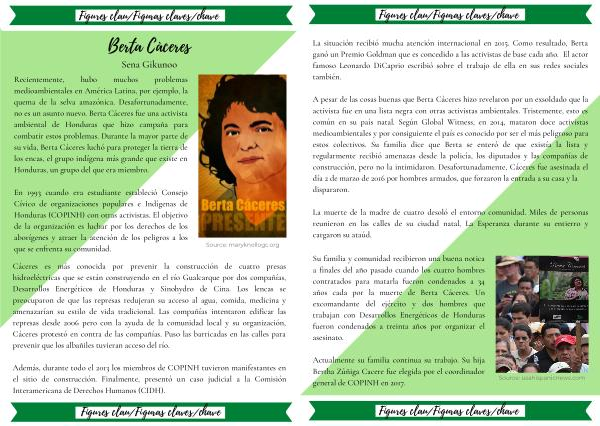 La situación recibió mucha atención internacional en 2015 . Como resultado , Berta ganó un Premio Goldman que es concedido a las activistas de base cada año . El actor famoso Leonardo DiCaprio escribió sobre el trabajo de ella en sus redes sociales también .