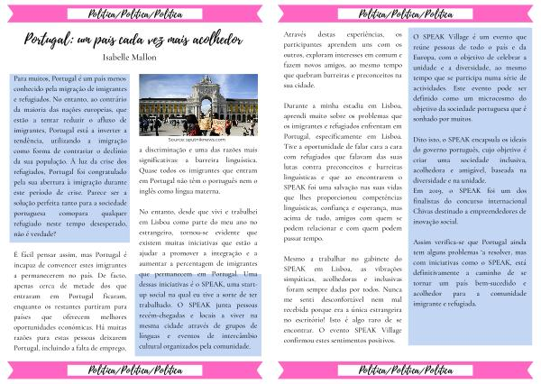 No entanto , desde que vivi e trabalhei em Lisboa como parte do meu ano no estrangeiro , tornou-se evidente que existem muitas iniciativas que estão a ajudar a promover a integração e a aumentar a percentagem de imigrantes que permanecem em Portugal . Uma dessas iniciativas é o SPEAK , uma startup social na qual eu tive a sorte de ter trabalhado . O SPEAK junta pessoas recém-chegadas e locais a viver na mesma cidade através de grupos de línguas e eventos de intercâmbio cultural organizados pela comunidade .
