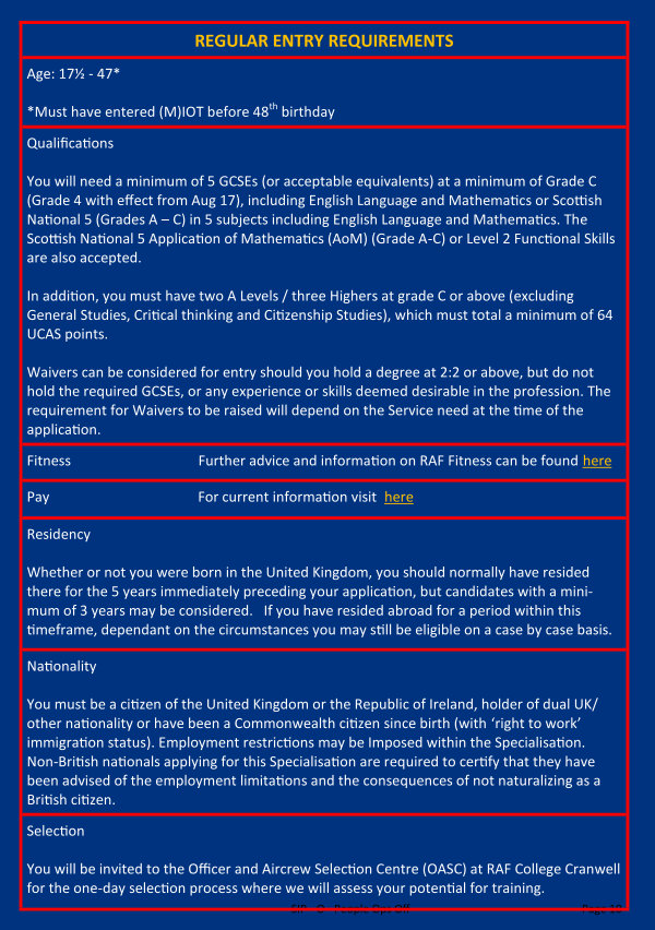 You will be invited to the Officer and Aircrew Selection Centre( OASC) at RAF College Cranwell for the one-day selection process where we will assess your potential for training.