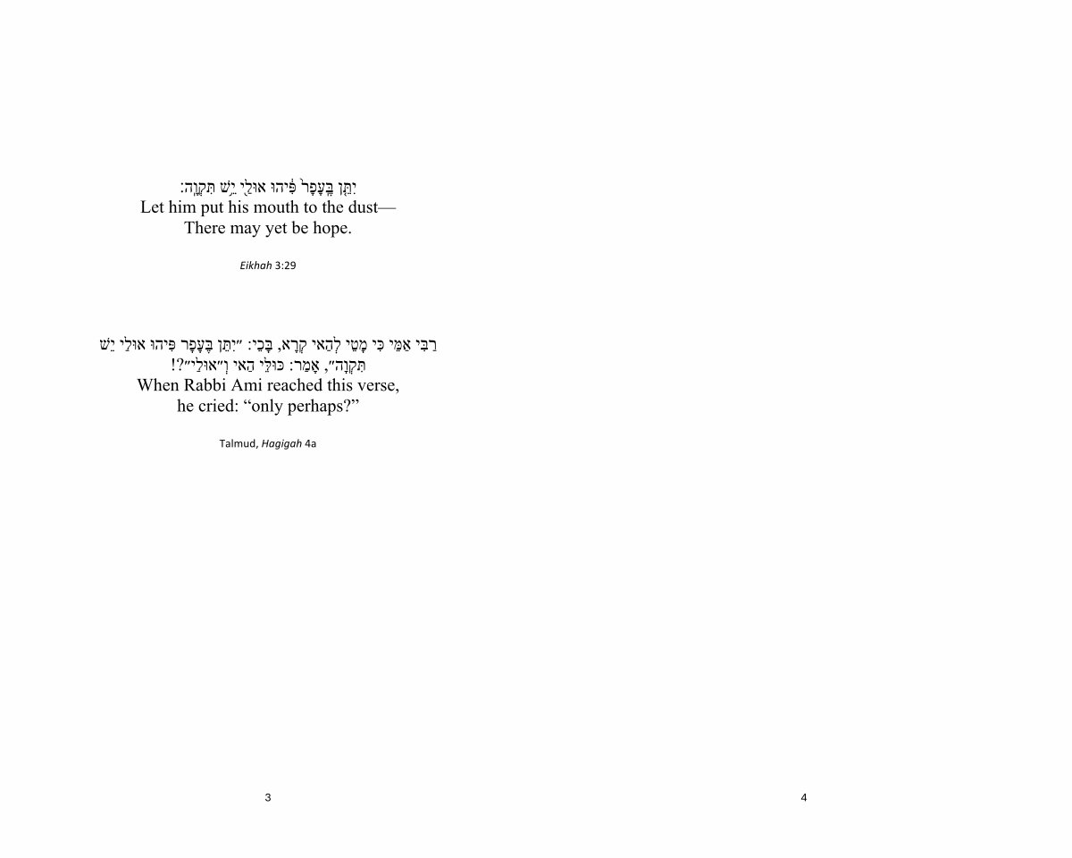 ן ֙רָפָעֽ ֶבּ ִ֔פּיהוּ אוּלַ ֖ י וָ֥ ֵישׁ תִּ קְ ֽ ה ׃ Let him put his mouth to the dust— There may yet be hope.