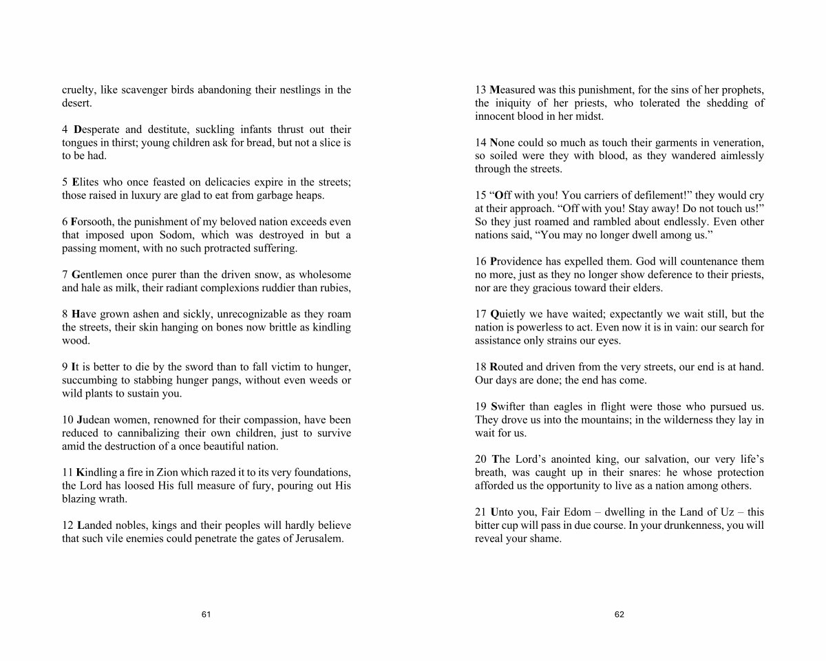 10 Judean women, renowned for their compassion, have been reduced to cannibalizing their own children, just to survive amid the destruction of a once beautiful nation.