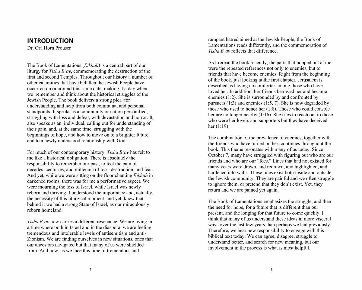 rampant hatred aimed at the Jewish People, the Book of Lamentations reads differently, and the commemoration of Tisha B’ av reflects that difference.