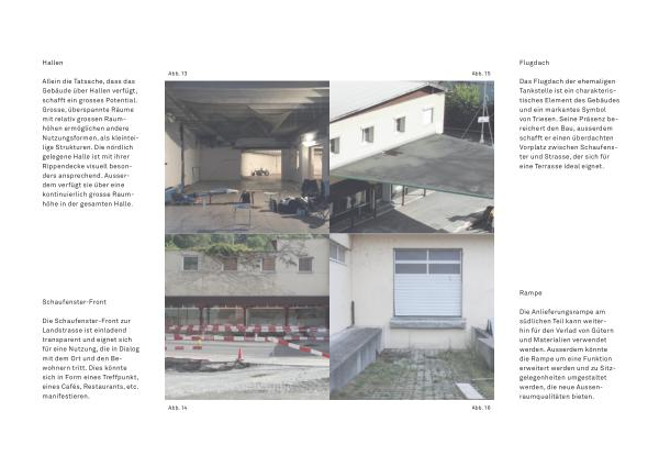 Die Schaufenster-Front zur Landstrasse ist einladend transparent und eignet sich für eine Nutzung , die in Dialog mit dem Ort und den Bewohnern tritt . Dies könnte sich in Form eines Treffpunkt , eines Cafés , Restaurants , etc . manifestieren .