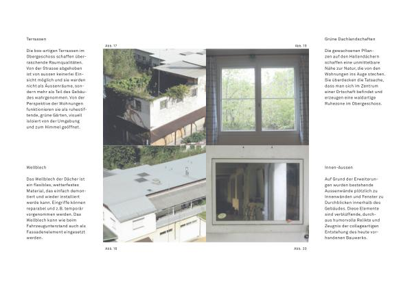 Auf Grund der Erweiterungen wurden bestehende Aussenwände plötzlich zu Innenwänden und Fenster zu Durchblicken innerhalb des Gebäudes . Diese Elemente sind verblüffende , durchaus humorvolle Relikte und Zeugnis der collageartigen Entstehung des heute vorhandenen Bauwerks .