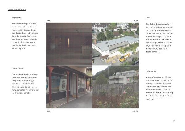Je nach Nutzung stellt das natürliche Licht ein Herausforderung im Erdgeschoss des Gebäudes dar . Durch die Erweiterungsbauten wurde das Druchdringen von natürlichem Licht in das Innere des Gebäudes immer mehr verunmöglicht .
