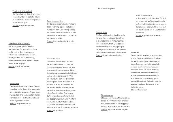 Artist in Residence In Kooperation mit dem Amt für Kultur könnte ein gefördertes Künstleratelier im OG ralisiert werden . Junge Künstler aus aller Welt könnten sich um das Stipendium in Liechtenstein bewerben . Status : Hypothetisches Projekt .