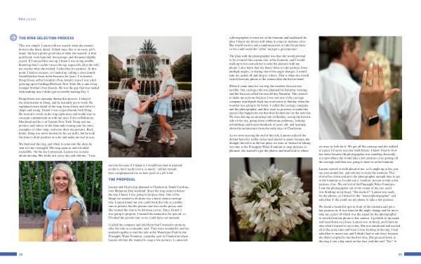 We found a beautiful spot in front of the fountain and got a few pictures in . It was time for the angle change and for me to take my jacket off which was the signal for the photographer to switch from my phone to her camera . I got back to my mark and went down on a knee . Lauren was in shock , and I have no idea what I started to say to her . She was emotional and excited all at the same time and wasn ’ t even looking at the ring . I had asked her to marry me , and I think I had to ask twice because she didn ’ t respond to me the first time . She glanced down at the ring , I saw a big smile on her face , and she said “ Yes !”