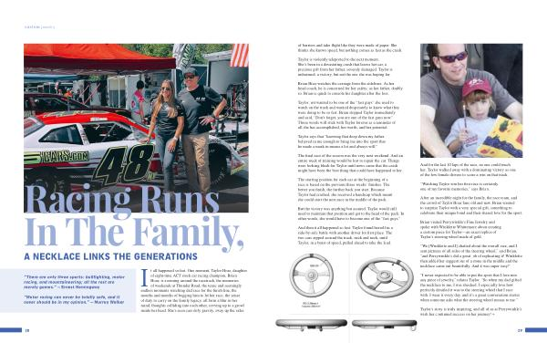 It all happened so fast . One moment , Taylor Hoar , daughter of eight-time ACT stock car racing champion , Brian Hoar , is zooming around the racetrack , the memories of weekends at Thunder Road , the tense and seemingly endless moments watching dad race for the finish line , the months and months of begging him to let her race , the sense of duty to carry on the family legacy , all form a blur in her mind , thoughts colliding into each other , revving up to a growl inside her head . She ’ s seen cars defy gravity , sway up the sides