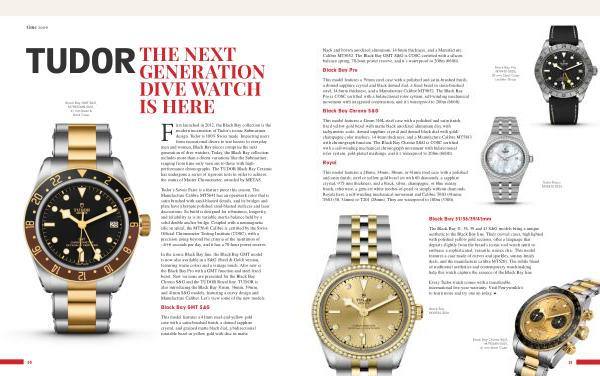 F irst launched in 2012 , the Black Bay collection is the modern incarnation of Tudor ’ s iconic Submariner design . Tudor is 100 % Swiss made . Impacting users from recreational divers to war heroes to everyday men and women , Black Bay pieces comprise the next generation of dive watches . Today , the Black Bay collection includes more than a dozen variations like the Submariner , ranging from time-only versions to those with highperformance chronographs . The TUDOR Black Bay Ceramic has undergone a series of rigorous tests in order to achieve the status of Master Chronometer , awarded by METAS .