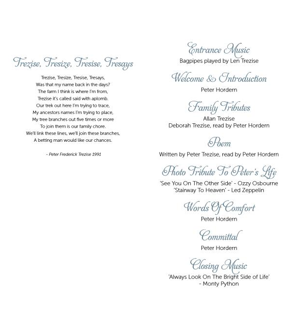 Allan Trezise Deborah Trezise , read by Peter Hordern